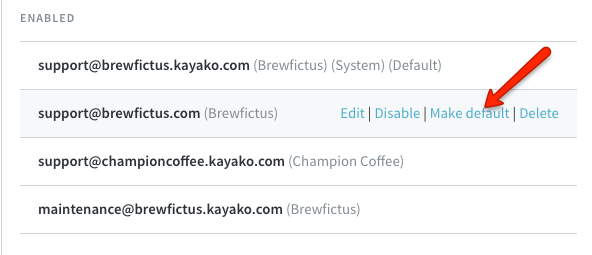 Kayako will use your default email address to send any messages generated by either the notification center or automation you've built. The article details the process of updating the default address.